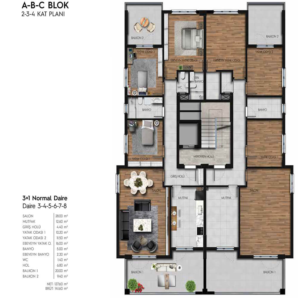 (2-3-4 KAT PLANI)